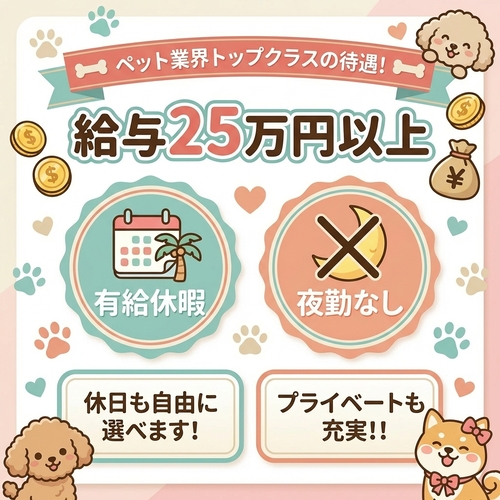歩合給はありませんが、給与・賞与・各種手当を含めた年収水準はペット業界でもトップクラスです。